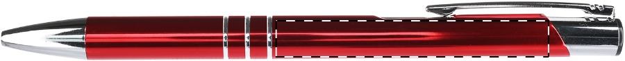 Aluminium-Kugelschreiber, blauschreibend.Maße: ø11×138 mmSchreibgerät-Typ: KugelschreiberSchreibgerät-Mechanik: DruckmechanikSchreibfarbe: BlauMinentyp: Normale MineLinienstärke: 1 mmMaterial: AluminiumVeredelungsposition 1: Korpus - rechts vom ClipTechnologie: GravurDurchmesser: 0Druckcode: E0Technologie: TampondruckMaximale Farben: 4Durchmesser: 0Druckcode: P1Technologie: UV LED DruckDurchmesser: 0Druckcode: UVBVeredelungsposition 2: Korpus - links vom ClipTechnologie: GravurDurchmesser: 0Druckcode: E0Technologie: TampondruckMaximale Farben: 4Durchmesser: 0Druckcode: P1Technologie: UV LED DruckDurchmesser: 0Druckcode: UVBVeredelungsposition 3: Korpus - in Verlängerung vom ClipTechnologie: GravurDurchmesser: 0Druckcode: E0Technologie: TampondruckMaximale Farben: 2Durchmesser: 0Druckcode: P1
