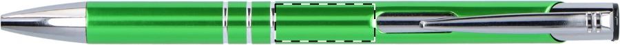Aluminium-Kugelschreiber, blauschreibend.Maße: ø11×138 mmSchreibgerät-Typ: KugelschreiberSchreibgerät-Mechanik: DruckmechanikSchreibfarbe: BlauMinentyp: Normale MineLinienstärke: 1 mmMaterial: AluminiumVeredelungsposition 1: Korpus - rechts vom ClipTechnologie: GravurDurchmesser: 0Druckcode: E0Technologie: TampondruckMaximale Farben: 4Durchmesser: 0Druckcode: P1Technologie: UV LED DruckDurchmesser: 0Druckcode: UVBVeredelungsposition 2: Korpus - links vom ClipTechnologie: GravurDurchmesser: 0Druckcode: E0Technologie: TampondruckMaximale Farben: 4Durchmesser: 0Druckcode: P1Technologie: UV LED DruckDurchmesser: 0Druckcode: UVBVeredelungsposition 3: Korpus - in Verlängerung vom ClipTechnologie: GravurDurchmesser: 0Druckcode: E0Technologie: TampondruckMaximale Farben: 2Durchmesser: 0Druckcode: P1