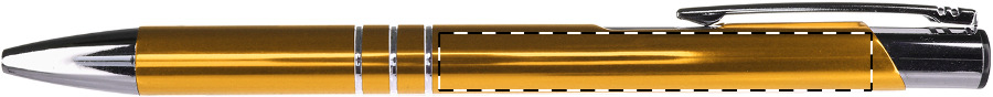 Aluminium-Kugelschreiber, blauschreibend.Maße: ø11×138 mmSchreibgerät-Typ: KugelschreiberSchreibgerät-Mechanik: DruckmechanikSchreibfarbe: BlauMinentyp: Normale MineLinienstärke: 1 mmMaterial: AluminiumVeredelungsposition 1: Korpus - rechts vom ClipTechnologie: GravurDurchmesser: 0Druckcode: E0Technologie: Gravur - EinzelnamenDurchmesser: 0Druckcode: NE0Technologie: UV-LED-Druck - EinzelnamenDurchmesser: 0Druckcode: NUVBTechnologie: TampondruckMaximale Farben: 4Durchmesser: 0Druckcode: P1Technologie: UV LED DruckDurchmesser: 0Druckcode: UVBVeredelungsposition 2: Korpus - links vom ClipTechnologie: GravurDurchmesser: 0Druckcode: E0Technologie: Gravur - EinzelnamenDurchmesser: 0Druckcode: NE0Technologie: UV-LED-Druck - EinzelnamenDurchmesser: 0Druckcode: NUVBTechnologie: TampondruckMaximale Farben: 4Durchmesser: 0Druckcode: P1Technologie: UV LED DruckDurchmesser: 0Druckcode: UVBVeredelungsposition 3: Korpus - in Verlängerung vom ClipTechnologie: GravurDurchmesser: 0Druckcode: E0Technologie: Gravur - EinzelnamenDurchmesser: 0Druckcode: NE0Technologie: TampondruckMaximale Farben: 2Durchmesser: 0Druckcode: P1