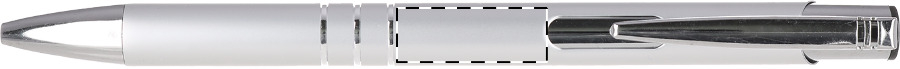 Kunststoff-Kugelschreiber mit matter Metallic-Oberfläche und schwarzen Elementen, blauschreibend.Maße: ø12×140 mmSchreibgerät-Typ: KugelschreiberSchreibgerät-Mechanik: DruckmechanikSchreibfarbe: BlauMinentyp: Normale MineLinienstärke: 1 mmMaterial: KunststoffVeredelungsposition 1: Korpus - rechts vom ClipTechnologie: TampondruckMaximale Farben: 2Durchmesser: 0Druckcode: P1Veredelungsposition 2: Korpus - links vom ClipTechnologie: TampondruckMaximale Farben: 2Durchmesser: 0Druckcode: P1Veredelungsposition 3: KlipTechnologie: TampondruckMaximale Farben: 2Durchmesser: 0Druckcode: P1