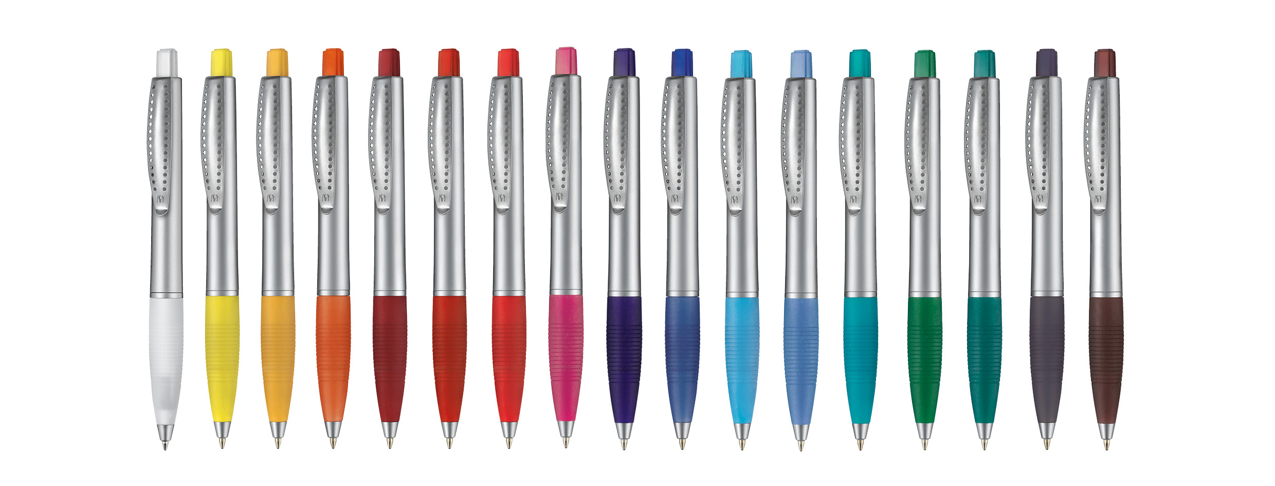 Dieser elegante Kugelschreiber ist bereits ein moderner Klassiker. Der Edelstahlclip und das silber lackierte Gehäuse vermitteln Wertigkeit und Stabilität und die große, ergonomische Gummi-Griffmanschette garantiert ermüdungsfreies Schreiben. Zudem ist dieses in Deutschland produzierte Schreibgerät mit einer Qualitätsmine Ultra ausgestattet.