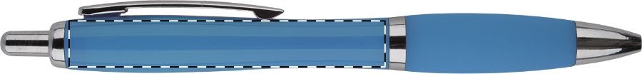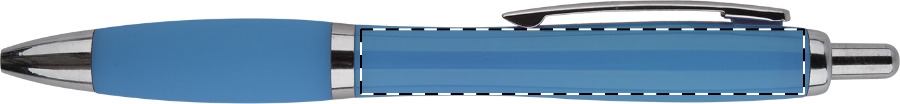 Drehkugelschreiber mit gedeckt mattem Gehäuse und Clip.Druckbereich: Auf dem Clip 40mm x 7mm Tampondruck (T), auf dem Clip 40mm x 7mm Digitaldruck (HD), in Clipverlängerung 50mm x 20mm Siebdruck (S), gegenüber vom Clip 50mm x 20mm Siebdruck (S), seitlich vom Clip 50mm x 20mm Siebdruck (S), auf dem Clip 40mm x 7mm Reliefdruck (HD)