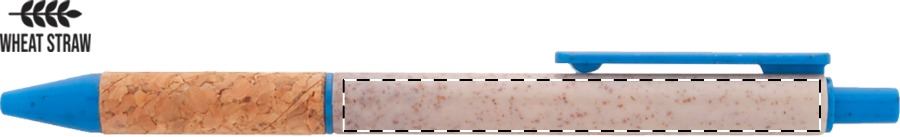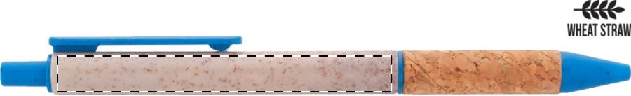 Kugelschreiber aus ökologischem Weizenstrohkunststoff mit Griffzone aus natürlichem Kork und farbigen Elementen, blauschreibend.Maße: ø9×142 mmSchreibgerät-Typ: KugelschreiberSchreibgerät-Mechanik: DruckmechanikSchreibfarbe: BlauLinienstärke: 1 mmMaterial: Weizenstroh, Kork, KunststoffVeredelungsposition 1: Rechts vom ClipTechnologie: UV-LED-Druck - EinzelnamenDurchmesser: 0Druckcode: NUVATechnologie: TampondruckMaximale Farben: 4Durchmesser: 0Druckcode: P0Technologie: UV LED DruckDurchmesser: 0Druckcode: UVAVeredelungsposition 2: Links vom ClipTechnologie: UV-LED-Druck - EinzelnamenDurchmesser: 0Druckcode: NUVATechnologie: TampondruckMaximale Farben: 4Durchmesser: 0Druckcode: P0Technologie: UV LED DruckDurchmesser: 0Druckcode: UVA
