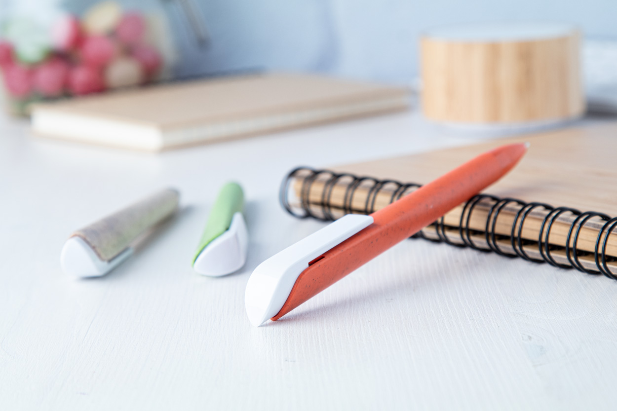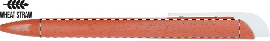 Ükologischer Kugelschreiber aus Weizenstroh-Kunststoff mit weißem Clip, blauschreibend.Maße: ø12×149 mmSchreibgerät-Typ: KugelschreiberSchreibgerät-Mechanik: DruckmechanikSchreibfarbe: BlauMaterial: Weizenstroh, Kunststoff (ABS)Veredelungsposition 1: Rechts vom ClipTechnologie: TampondruckMaximale Farben: 4Durchmesser: 0Druckcode: P0Veredelungsposition 2: Links vom ClipTechnologie: TampondruckMaximale Farben: 4Durchmesser: 0Druckcode: P0Veredelungsposition 3: Korpus - rechts vom ClipTechnologie: TampondruckMaximale Farben: 4Durchmesser: 0Druckcode: P0Veredelungsposition 4: Korpus - links vom ClipTechnologie: TampondruckMaximale Farben: 4Durchmesser: 0Druckcode: P0Veredelungsposition 5: Korpus - in Verlängerung vom ClipTechnologie: TampondruckMaximale Farben: 4Durchmesser: 0Druckcode: P0Veredelungsposition 6: KlipTechnologie: TampondruckMaximale Farben: 1Durchmesser: 0Druckcode: P1