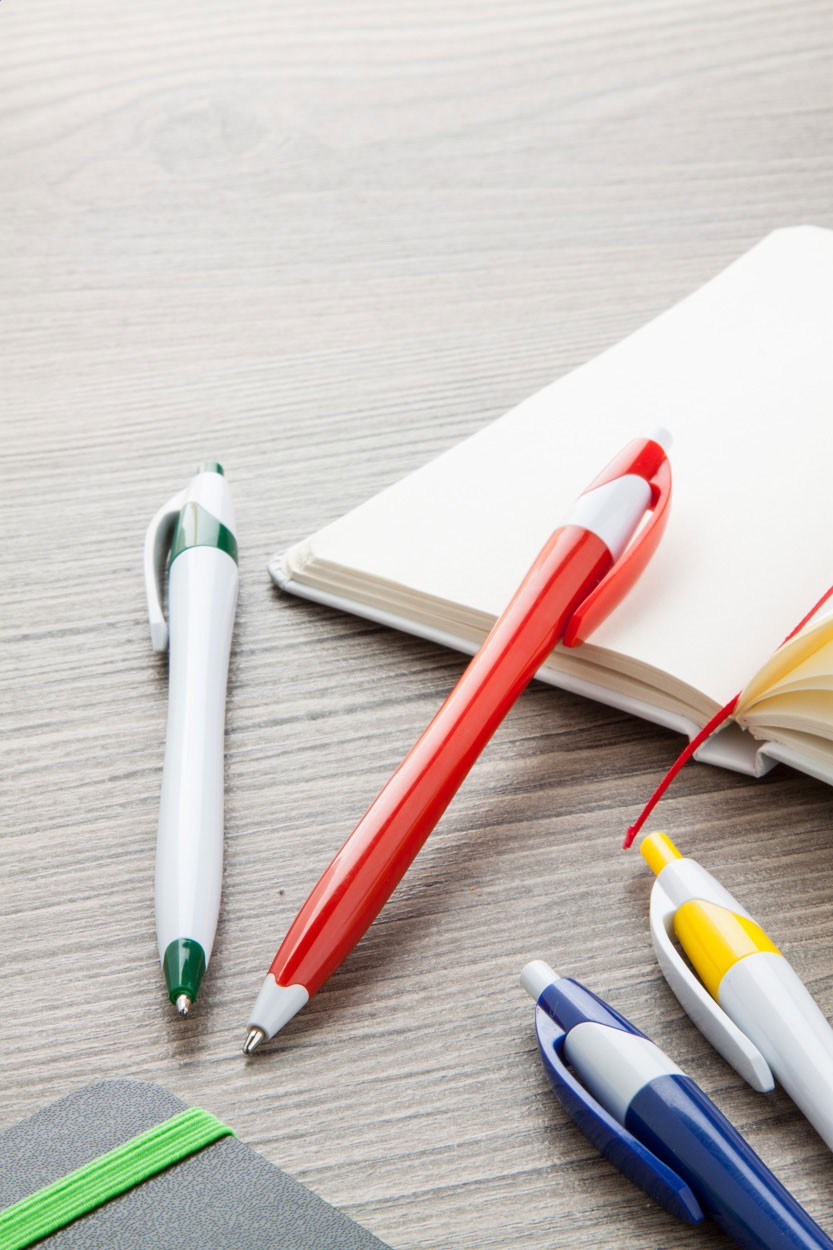 Farbiger Kugelschreiber aus Kunststoff, schwarzschreibend.Maße: ø10×138 mmSchreibgerät-Typ: KugelschreiberSchreibgerät-Mechanik: DruckmechanikSchreibfarbe: SchwarzMinentyp: Normale MineLinienstärke: 1 mmMaterial: KunststoffVeredelungsposition 1: Korpus - rechts vom ClipTechnologie: TampondruckMaximale Farben: 4Durchmesser: 0Druckcode: P0Technologie: TampondruckMaximale Farben: 1Durchmesser: 0Druckcode: P1Technologie: UV LED DruckDurchmesser: 0Druckcode: UVAVeredelungsposition 2: Korpus - links vom ClipTechnologie: TampondruckMaximale Farben: 4Durchmesser: 0Druckcode: P0Technologie: TampondruckMaximale Farben: 1Durchmesser: 0Druckcode: P1Technologie: UV LED DruckDurchmesser: 0Druckcode: UVAVeredelungsposition 3: KlipTechnologie: TampondruckMaximale Farben: 4Durchmesser: 0Druckcode: P0Veredelungsposition 4: Korpus - in Verlängerung vom ClipTechnologie: TampondruckMaximale Farben: 4Durchmesser: 0Druckcode: P0