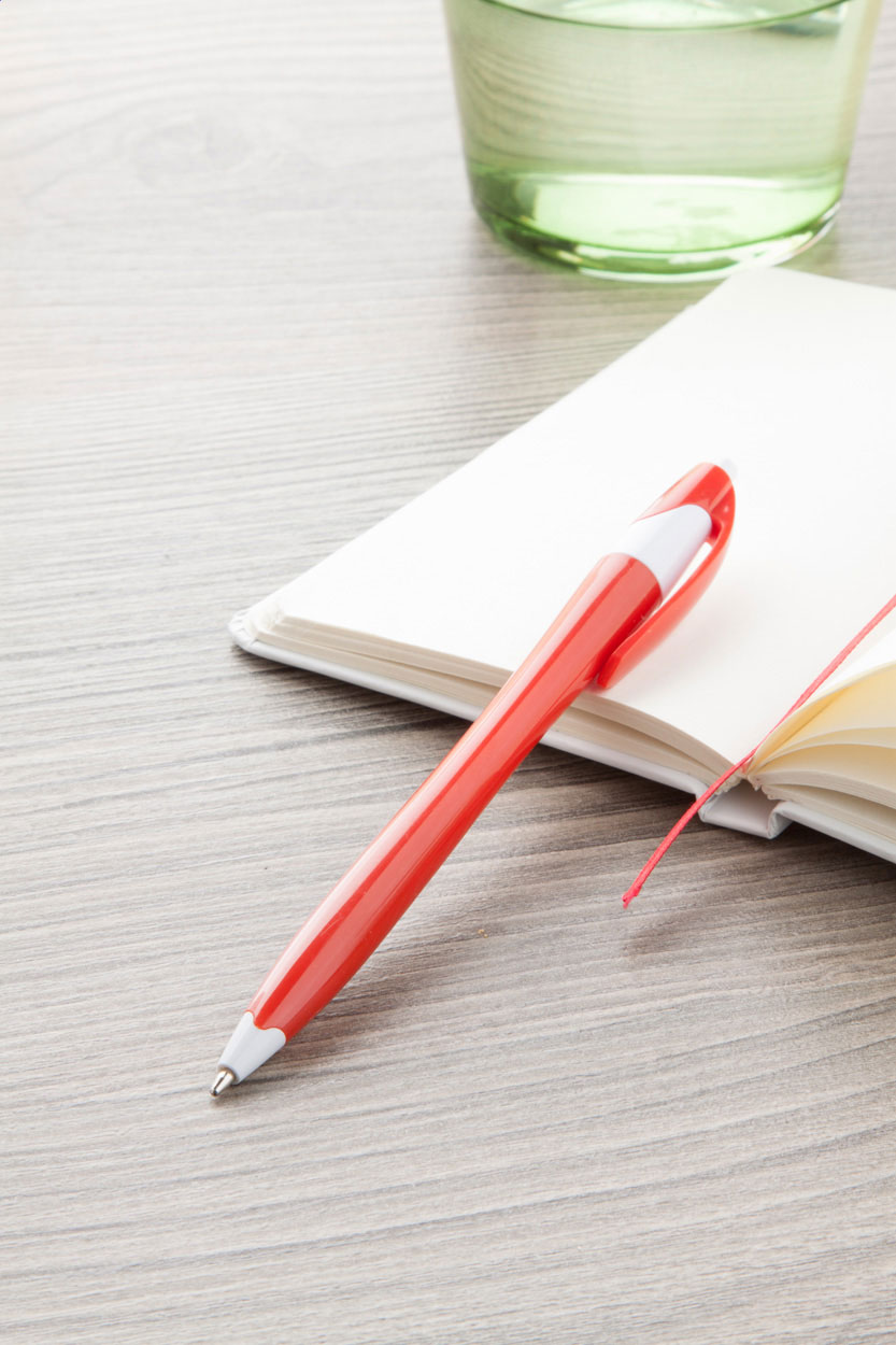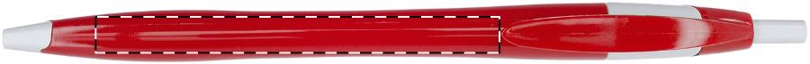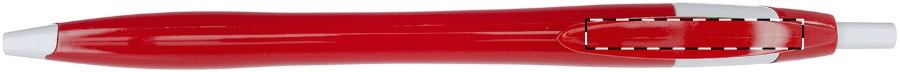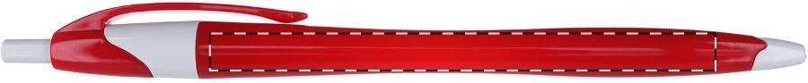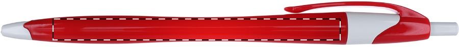 Weißer Kunststoff-Kugelschreiber mit farbigem Clip, blauschreibend.Maße: ø10×138 mmSchreibgerät-Typ: KugelschreiberSchreibgerät-Mechanik: DruckmechanikSchreibfarbe: BlauMinentyp: Normale MineLinienstärke: 1 mmMaterial: Kunststoff (ABS)Veredelungsposition 1: Korpus - rechts vom ClipTechnologie: UV-LED-Druck - EinzelnamenDurchmesser: 0Druckcode: NUVATechnologie: TampondruckMaximale Farben: 4Durchmesser: 0Druckcode: P0Technologie: TampondruckMaximale Farben: 1Durchmesser: 0Druckcode: P1Technologie: UV LED DruckDurchmesser: 0Druckcode: UVAVeredelungsposition 2: Korpus - links vom ClipTechnologie: UV-LED-Druck - EinzelnamenDurchmesser: 0Druckcode: NUVATechnologie: TampondruckMaximale Farben: 4Durchmesser: 0Druckcode: P0Technologie: TampondruckMaximale Farben: 1Durchmesser: 0Druckcode: P1Technologie: UV LED DruckDurchmesser: 0Druckcode: UVAVeredelungsposition 3: KlipTechnologie: TampondruckMaximale Farben: 4Durchmesser: 0Druckcode: P0Veredelungsposition 4: Korpus - in Verlängerung vom ClipTechnologie: TampondruckMaximale Farben: 4Durchmesser: 0Druckcode: P0