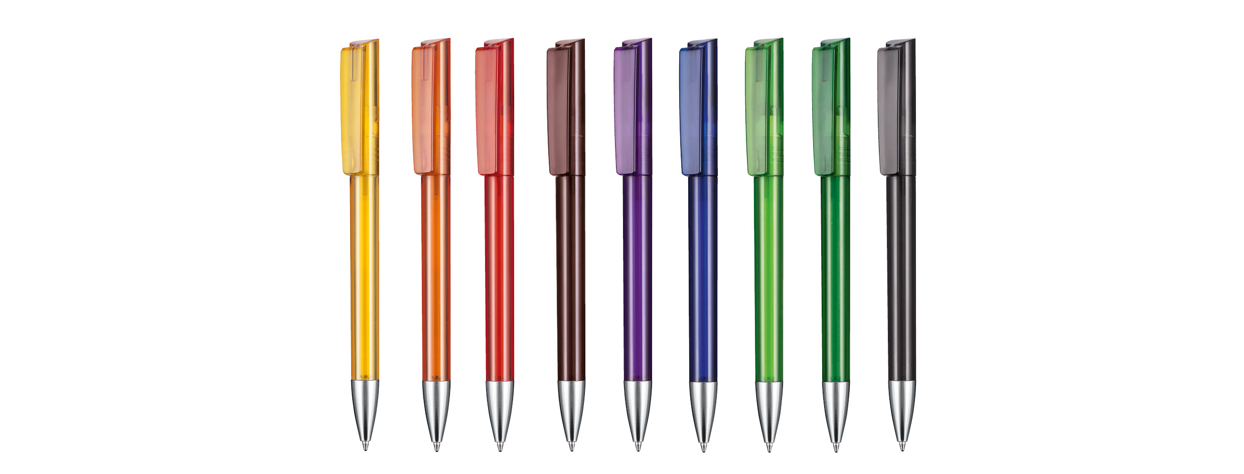 Absoluter Top-Seller hergestellt in Deutschland. Ausgezeichnetes Preis-Leistungs-Verhältnis. Die glänzend vernickelte Kunststoffspitze passt sich dem Hochglanz des Kugelschreibers an und signalisiert Wertigkeit. Modernes Design kombiniert mit anspruchsvoller Qualität. Ausgestattet ist dieser Druckkugelschreiber mit einer Qualitätsmine Marathon.Material: ABS-KunststoffGewicht: 9.3 gLänge: 148 mmDurchmesser: 11 mmVeredelung: Siebdruck, TampondruckWerbeanbringung in mm: 60x31 / 35x7 / 20x7Druckarten: 1,2,3,4,5,6,7,8