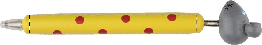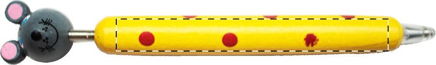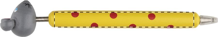 Holz-Kugelschreiber mit farbigem Schaft und Tierkopf am Stiftende, blauschreibend.