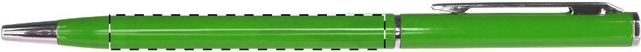 Aluminium-Kugelschreiber, blauschreibend.Maße: ø8×129 mmSchreibgerät-Typ: KugelschreiberSchreibgerät-Mechanik: DrehmechanikSchreibfarbe: BlauMinentyp: Normale MineLinienstärke: 1 mmMaterial: AluminiumVeredelungsposition 1: Rechts vom ClipTechnologie: GravurDurchmesser: 0Druckcode: E0Technologie: Gravur - EinzelnamenDurchmesser: 0Druckcode: NE0Technologie: TampondruckMaximale Farben: 4Durchmesser: 0Druckcode: P1Veredelungsposition 2: Links vom ClipTechnologie: GravurDurchmesser: 0Druckcode: E0Technologie: Gravur - EinzelnamenDurchmesser: 0Druckcode: NE0Technologie: TampondruckMaximale Farben: 4Durchmesser: 0Druckcode: P2Veredelungsposition 3: Korpus - rechts vom ClipTechnologie: GravurDurchmesser: 0Druckcode: E0Technologie: Gravur - EinzelnamenDurchmesser: 0Druckcode: NE0Technologie: TampondruckMaximale Farben: 4Durchmesser: 0Druckcode: P2Veredelungsposition 4: Korpus - links vom ClipTechnologie: GravurDurchmesser: 0Druckcode: E0Technologie: Gravur - EinzelnamenDurchmesser: 0Druckcode: NE0Technologie: TampondruckMaximale Farben: 4Durchmesser: 0Druckcode: P2Veredelungsposition 5: Gegenüber vom ClipTechnologie: GravurDurchmesser: 0Druckcode: E0Technologie: Gravur - EinzelnamenDurchmesser: 0Druckcode: NE0Technologie: TampondruckMaximale Farben: 4Durchmesser: 0Druckcode: P2Veredelungsposition 6: Korpus - gegenüber vom ClipTechnologie: GravurDurchmesser: 0Druckcode: E0Technologie: Gravur - EinzelnamenDurchmesser: 0Druckcode: NE0Technologie: TampondruckMaximale Farben: 4Durchmesser: 0Druckcode: P1Veredelungsposition 7: Korpus - in Verlängerung vom ClipTechnologie: GravurDurchmesser: 0Druckcode: E0Technologie: Gravur - EinzelnamenDurchmesser: 0Druckcode: NE0Technologie: TampondruckMaximale Farben: 4Durchmesser: 0Druckcode: P1