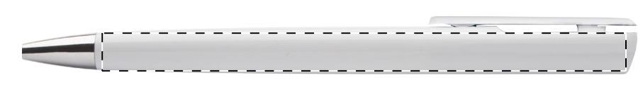 Weißer Kunststoff-Kugelschreiber mit farbigem Clip, blauschreibend.Maße: ø10×138 mmSchreibgerät-Typ: KugelschreiberSchreibgerät-Mechanik: DruckmechanikSchreibfarbe: BlauMinentyp: Normale MineLinienstärke: 1 mmMaterial: Kunststoff (ABS)Veredelungsposition 1: Korpus - rechts vom ClipTechnologie: UV-LED-Druck - EinzelnamenDurchmesser: 0Druckcode: NUVATechnologie: TampondruckMaximale Farben: 4Durchmesser: 0Druckcode: P0Technologie: TampondruckMaximale Farben: 1Durchmesser: 0Druckcode: P1Technologie: UV LED DruckDurchmesser: 0Druckcode: UVAVeredelungsposition 2: Korpus - links vom ClipTechnologie: UV-LED-Druck - EinzelnamenDurchmesser: 0Druckcode: NUVATechnologie: TampondruckMaximale Farben: 4Durchmesser: 0Druckcode: P0Technologie: TampondruckMaximale Farben: 1Durchmesser: 0Druckcode: P1Technologie: UV LED DruckDurchmesser: 0Druckcode: UVAVeredelungsposition 3: KlipTechnologie: TampondruckMaximale Farben: 4Durchmesser: 0Druckcode: P0Veredelungsposition 4: Korpus - in Verlängerung vom ClipTechnologie: TampondruckMaximale Farben: 4Durchmesser: 0Druckcode: P0