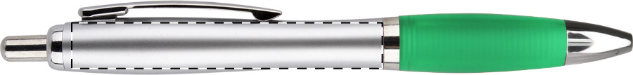 Kunststoff-Kugelschreiber mit silbernem Schaft und farbiger Gummi-Griffzone, blauschreibend.Maße: ø13×140 mmSchreibgerät-Typ: KugelschreiberSchreibgerät-Mechanik: DruckmechanikSchreibfarbe: BlauMinentyp: Normale MineLinienstärke: 1 mmMaterial: Kunststoff (ABS), GummiVeredelungsposition 1: Rechts vom ClipTechnologie: TampondruckMaximale Farben: 4Durchmesser: 0Druckcode: P0Technologie: UV LED DruckDurchmesser: 0Druckcode: UVAVeredelungsposition 2: Links vom ClipTechnologie: TampondruckMaximale Farben: 4Durchmesser: 0Druckcode: P0Technologie: UV LED DruckDurchmesser: 0Druckcode: UVAVeredelungsposition 3: Korpus - rechts vom ClipTechnologie: TampondruckMaximale Farben: 4Durchmesser: 0Druckcode: P0Technologie: UV LED DruckDurchmesser: 0Druckcode: UVAVeredelungsposition 4: Korpus - links vom ClipTechnologie: TampondruckMaximale Farben: 4Durchmesser: 0Druckcode: P0Technologie: UV LED DruckDurchmesser: 0Druckcode: UVA