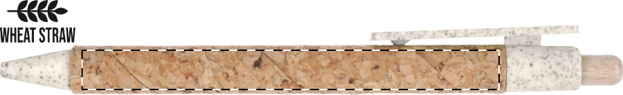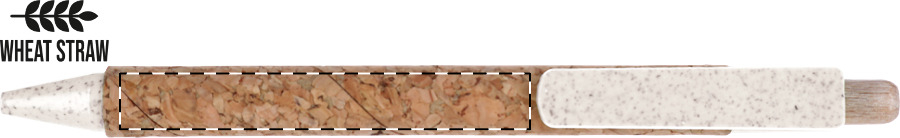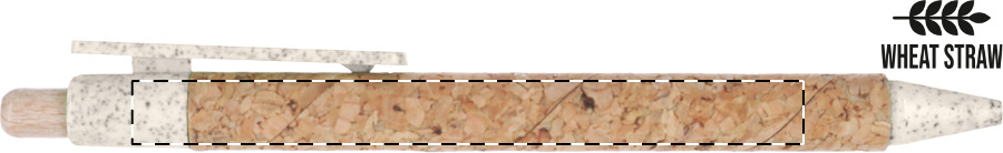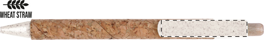 Ökologischer Kugelschreiber aus Weizenstroh-Kunststoff, Oberfläche Korpus Naturkork, blauschreibend.