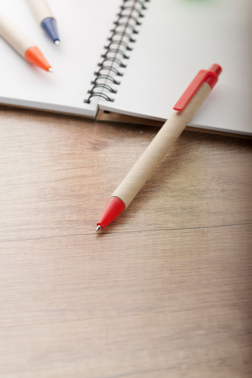 Kugelschreiber aus Recyclingpapier, blauschreibend.