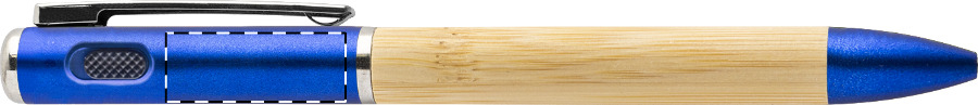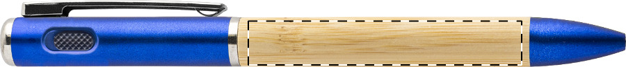Drehkugelschreiber aus Bambus und recyceltem ABS Kunststoff mit 1 LED Taschenlampe (inkl. Knopfzellenbatterie). Blauschreibend.Maße: ø12×147 mmSchreibgerät-Typ: KugelschreiberSchreibgerät-Mechanik: DrehmechanikSchreibfarbe: BlauMaterial: Bambus, Recycelter ABS-KunststoffVeredelungsposition 1: Rechts vom ClipTechnologie: GravurDurchmesser: 0Druckcode: E1Technologie: TampondruckMaximale Farben: 4Durchmesser: 0Druckcode: P1Veredelungsposition 2: Links vom ClipTechnologie: GravurDurchmesser: 0Druckcode: E1Technologie: TampondruckMaximale Farben: 4Durchmesser: 0Druckcode: P1Veredelungsposition 3: Korpus - rechts vom ClipTechnologie: GravurDurchmesser: 0Druckcode: E1Technologie: TampondruckMaximale Farben: 4Durchmesser: 0Druckcode: P1Veredelungsposition 4: Korpus - links vom ClipTechnologie: GravurDurchmesser: 0Druckcode: E1Technologie: TampondruckMaximale Farben: 4Durchmesser: 0Druckcode: P1