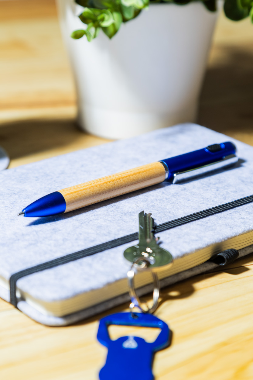 Drehkugelschreiber aus Bambus und recyceltem ABS Kunststoff mit 1 LED Taschenlampe (inkl. Knopfzellenbatterie). Blauschreibend.