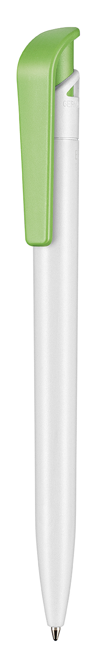 Weißer Kunststoff-Kugelschreiber mit farbigem Clip, blauschreibend.Maße: ø10×138 mmSchreibgerät-Typ: KugelschreiberSchreibgerät-Mechanik: DruckmechanikSchreibfarbe: BlauMinentyp: Normale MineLinienstärke: 1 mmMaterial: Kunststoff (ABS)Veredelungsposition 1: Korpus - rechts vom ClipTechnologie: UV-LED-Druck - EinzelnamenDurchmesser: 0Druckcode: NUVATechnologie: TampondruckMaximale Farben: 4Durchmesser: 0Druckcode: P0Technologie: TampondruckMaximale Farben: 1Durchmesser: 0Druckcode: P1Technologie: UV LED DruckDurchmesser: 0Druckcode: UVAVeredelungsposition 2: Korpus - links vom ClipTechnologie: UV-LED-Druck - EinzelnamenDurchmesser: 0Druckcode: NUVATechnologie: TampondruckMaximale Farben: 4Durchmesser: 0Druckcode: P0Technologie: TampondruckMaximale Farben: 1Durchmesser: 0Druckcode: P1Technologie: UV LED DruckDurchmesser: 0Druckcode: UVAVeredelungsposition 3: KlipTechnologie: TampondruckMaximale Farben: 4Durchmesser: 0Druckcode: P0Veredelungsposition 4: Korpus - in Verlängerung vom ClipTechnologie: TampondruckMaximale Farben: 4Durchmesser: 0Druckcode: P0