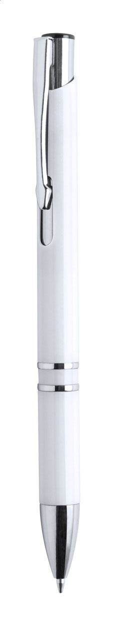 Weißer Kunststoff-Kugelschreiber mit farbigem Clip, blauschreibend.Maße: ø10×138 mmSchreibgerät-Typ: KugelschreiberSchreibgerät-Mechanik: DruckmechanikSchreibfarbe: BlauMinentyp: Normale MineLinienstärke: 1 mmMaterial: Kunststoff (ABS)Veredelungsposition 1: Korpus - rechts vom ClipTechnologie: UV-LED-Druck - EinzelnamenDurchmesser: 0Druckcode: NUVATechnologie: TampondruckMaximale Farben: 4Durchmesser: 0Druckcode: P0Technologie: TampondruckMaximale Farben: 1Durchmesser: 0Druckcode: P1Technologie: UV LED DruckDurchmesser: 0Druckcode: UVAVeredelungsposition 2: Korpus - links vom ClipTechnologie: UV-LED-Druck - EinzelnamenDurchmesser: 0Druckcode: NUVATechnologie: TampondruckMaximale Farben: 4Durchmesser: 0Druckcode: P0Technologie: TampondruckMaximale Farben: 1Durchmesser: 0Druckcode: P1Technologie: UV LED DruckDurchmesser: 0Druckcode: UVAVeredelungsposition 3: KlipTechnologie: TampondruckMaximale Farben: 4Durchmesser: 0Druckcode: P0Veredelungsposition 4: Korpus - in Verlängerung vom ClipTechnologie: TampondruckMaximale Farben: 4Durchmesser: 0Druckcode: P0