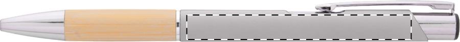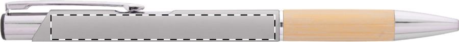 Aluminium-Kugelschreiber mit Bambus-Griffzone, gummierter Oberfläche und spezieller Beschichtung für eine Spiegelgravur, blauschreibend.