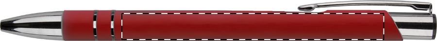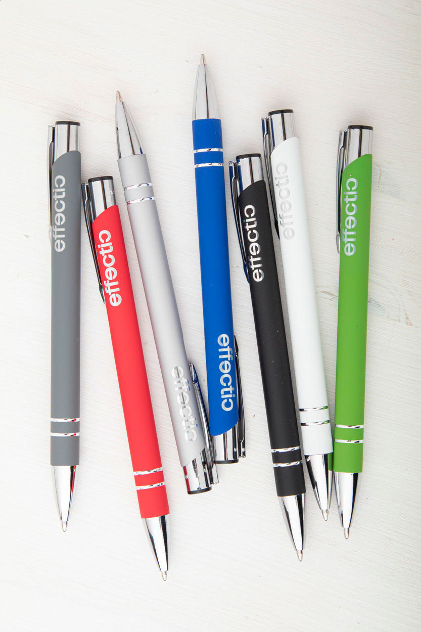 Aluminium-Kugelschreiber mit gummierter Oberfläche und Spezialbeschichtung für eine Spiegelgravur, blauschreibend.Maße: ø10×138 mmSchreibgerät-Typ: KugelschreiberSchreibgerät-Mechanik: DruckmechanikSchreibfarbe: BlauMinentyp: Normale MineLinienstärke: 1 mmMaterial: AluminiumVeredelungsposition 1: Korpus - rechts vom ClipTechnologie: GravurDurchmesser: 0Druckcode: E1Veredelungsposition 2: Korpus - links vom ClipTechnologie: GravurDurchmesser: 0Druckcode: E1Veredelungsposition 3: Korpus - in Verlängerung vom ClipTechnologie: GravurDurchmesser: 0Druckcode: E1Veredelungsposition 4: Korpus - gegenüber vom ClipTechnologie: GravurDurchmesser: 0Druckcode: E1
