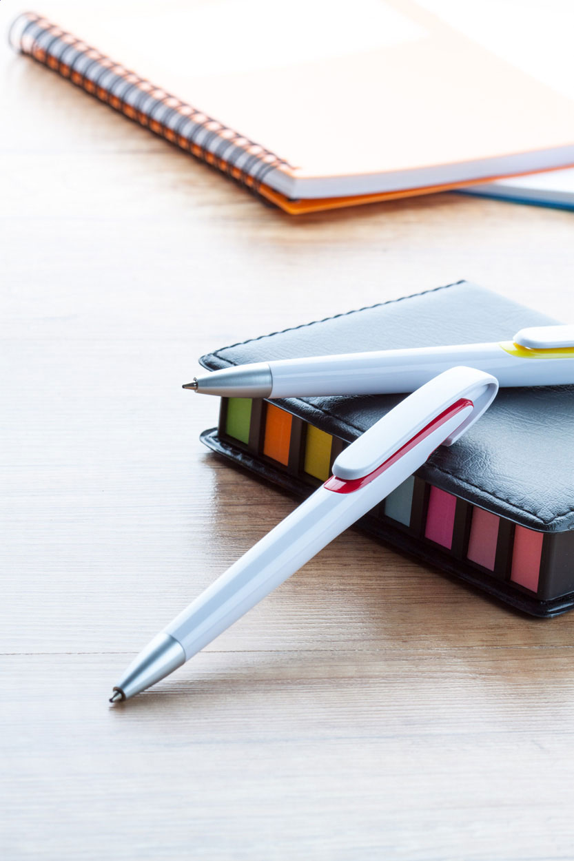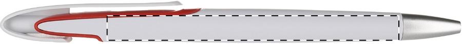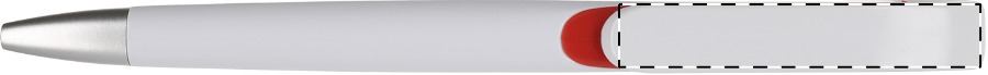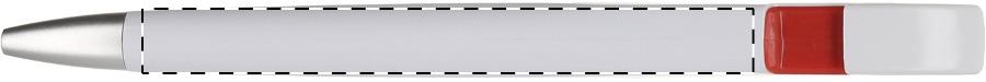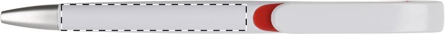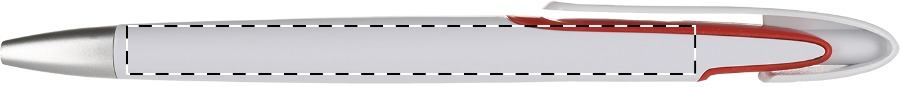 Weißer Kunststoff-Kugelschreiber mit farbigem Clip, blauschreibend.Maße: ø10×138 mmSchreibgerät-Typ: KugelschreiberSchreibgerät-Mechanik: DruckmechanikSchreibfarbe: BlauMinentyp: Normale MineLinienstärke: 1 mmMaterial: Kunststoff (ABS)Veredelungsposition 1: Korpus - rechts vom ClipTechnologie: UV-LED-Druck - EinzelnamenDurchmesser: 0Druckcode: NUVATechnologie: TampondruckMaximale Farben: 4Durchmesser: 0Druckcode: P0Technologie: TampondruckMaximale Farben: 1Durchmesser: 0Druckcode: P1Technologie: UV LED DruckDurchmesser: 0Druckcode: UVAVeredelungsposition 2: Korpus - links vom ClipTechnologie: UV-LED-Druck - EinzelnamenDurchmesser: 0Druckcode: NUVATechnologie: TampondruckMaximale Farben: 4Durchmesser: 0Druckcode: P0Technologie: TampondruckMaximale Farben: 1Durchmesser: 0Druckcode: P1Technologie: UV LED DruckDurchmesser: 0Druckcode: UVAVeredelungsposition 3: KlipTechnologie: TampondruckMaximale Farben: 4Durchmesser: 0Druckcode: P0Veredelungsposition 4: Korpus - in Verlängerung vom ClipTechnologie: TampondruckMaximale Farben: 4Durchmesser: 0Druckcode: P0