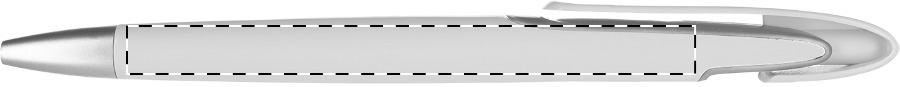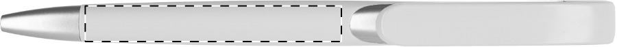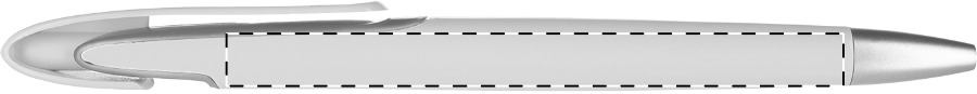 Weißer Kunststoff-Kugelschreiber mit farbigem Clip, blauschreibend.Maße: ø10×138 mmSchreibgerät-Typ: KugelschreiberSchreibgerät-Mechanik: DruckmechanikSchreibfarbe: BlauMinentyp: Normale MineLinienstärke: 1 mmMaterial: Kunststoff (ABS)Veredelungsposition 1: Korpus - rechts vom ClipTechnologie: UV-LED-Druck - EinzelnamenDurchmesser: 0Druckcode: NUVATechnologie: TampondruckMaximale Farben: 4Durchmesser: 0Druckcode: P0Technologie: TampondruckMaximale Farben: 1Durchmesser: 0Druckcode: P1Technologie: UV LED DruckDurchmesser: 0Druckcode: UVAVeredelungsposition 2: Korpus - links vom ClipTechnologie: UV-LED-Druck - EinzelnamenDurchmesser: 0Druckcode: NUVATechnologie: TampondruckMaximale Farben: 4Durchmesser: 0Druckcode: P0Technologie: TampondruckMaximale Farben: 1Durchmesser: 0Druckcode: P1Technologie: UV LED DruckDurchmesser: 0Druckcode: UVAVeredelungsposition 3: KlipTechnologie: TampondruckMaximale Farben: 4Durchmesser: 0Druckcode: P0Veredelungsposition 4: Korpus - in Verlängerung vom ClipTechnologie: TampondruckMaximale Farben: 4Durchmesser: 0Druckcode: P0