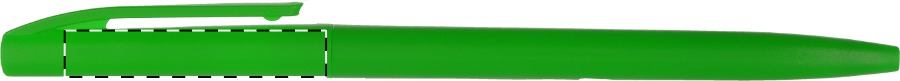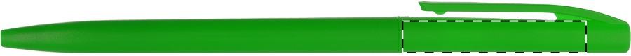Drehkugelschreiber aus Kunststoff, blauschreibend.Maße: ø9×135 mmSchreibgerät-Typ: KugelschreiberSchreibgerät-Mechanik: DrehmechanikSchreibfarbe: BlauLinienstärke: 1 mmMinentyp: Normale schmale MineMaterial: KunststoffVeredelungsposition 1: Rechts vom ClipTechnologie: TampondruckMaximale Farben: 4Durchmesser: 0Druckcode: P0Veredelungsposition 2: Links vom ClipTechnologie: TampondruckMaximale Farben: 4Durchmesser: 0Druckcode: P0Veredelungsposition 3: Korpus - rechts vom ClipTechnologie: TampondruckMaximale Farben: 4Durchmesser: 0Druckcode: P0Veredelungsposition 4: Korpus - links vom ClipTechnologie: TampondruckMaximale Farben: 4Durchmesser: 0Druckcode: P0Veredelungsposition 5: Korpus - in Verlängerung vom ClipTechnologie: TampondruckMaximale Farben: 4Durchmesser: 0Druckcode: P0