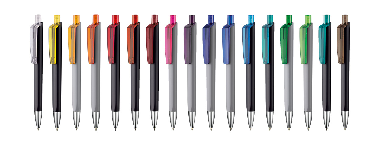 Hochwertiger Druckkugelschreiber hergestellt in Deutschland. Ergonomischer, dreieckiger Schaft garantiert ermüdungsfreies Schreiben. Großer, stabiler Clip bietet viel Platz für Werbeanbringung. Der dickwandige Schaft garantiert ein wertiges Gewicht dieses außergewöhnlichen Schreibgerätes. Soft-Touch-Oberfläche und hochglänzender Clip und Drücker unterstreichen seine Wertigkeit. Ausgestattet ist dieser Kugelschreiber mit einer Qualitätsmine ULTRA.