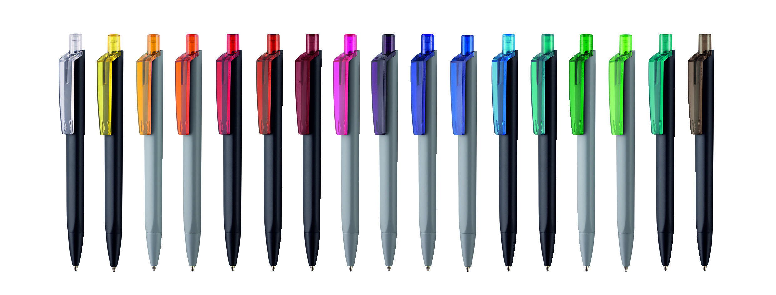Hochwertiger Druckkugelschreiber hergestellt in Deutschland. Ergonomischer, dreieckiger Schaft garantiert ermüdungsfreies Schreiben. Großer, stabiler Clip bietet viel Platz für Werbeanbringung. Der dickwandige Schaft garantiert ein wertiges Gewicht dieses außergewöhnlichen Schreibgerätes. Soft-Touch-Oberfläche und hochglänzender Clip und Drücker unterstreichen seine Wertigkeit. Ausgestattet ist dieser Kugelschreiber mit einer Qualitätsmine ULTRA.