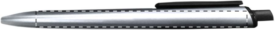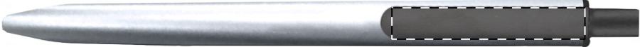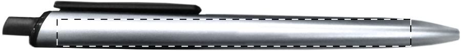 Kunststoff-Kugelschreiber mit matter Metallic-Oberfläche und schwarzen Elementen, blauschreibend.