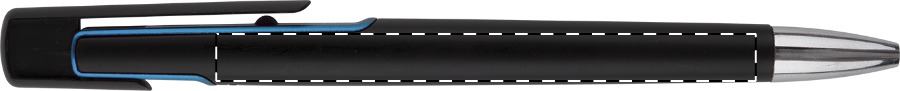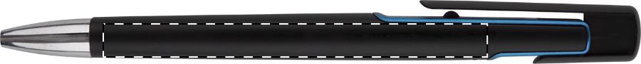 Kunststoff-Kugelschreiber mit verchromter Spitze und farbigen Elementen, blauschreibend.