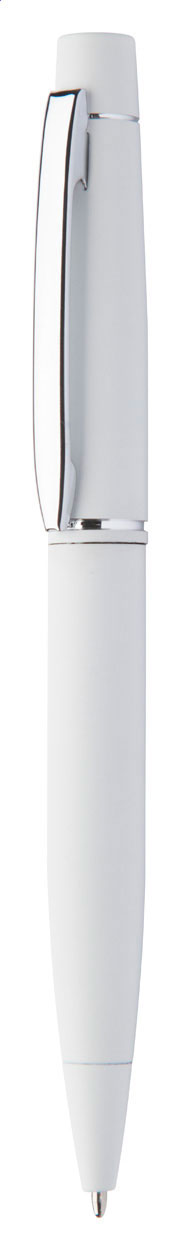 Weißer Kunststoff-Kugelschreiber mit farbigem Clip, blauschreibend.Maße: ø10×138 mmSchreibgerät-Typ: KugelschreiberSchreibgerät-Mechanik: DruckmechanikSchreibfarbe: BlauMinentyp: Normale MineLinienstärke: 1 mmMaterial: Kunststoff (ABS)Veredelungsposition 1: Korpus - rechts vom ClipTechnologie: UV-LED-Druck - EinzelnamenDurchmesser: 0Druckcode: NUVATechnologie: TampondruckMaximale Farben: 4Durchmesser: 0Druckcode: P0Technologie: TampondruckMaximale Farben: 1Durchmesser: 0Druckcode: P1Technologie: UV LED DruckDurchmesser: 0Druckcode: UVAVeredelungsposition 2: Korpus - links vom ClipTechnologie: UV-LED-Druck - EinzelnamenDurchmesser: 0Druckcode: NUVATechnologie: TampondruckMaximale Farben: 4Durchmesser: 0Druckcode: P0Technologie: TampondruckMaximale Farben: 1Durchmesser: 0Druckcode: P1Technologie: UV LED DruckDurchmesser: 0Druckcode: UVAVeredelungsposition 3: KlipTechnologie: TampondruckMaximale Farben: 4Durchmesser: 0Druckcode: P0Veredelungsposition 4: Korpus - in Verlängerung vom ClipTechnologie: TampondruckMaximale Farben: 4Durchmesser: 0Druckcode: P0