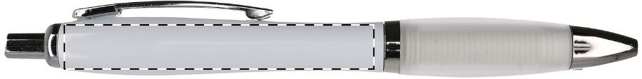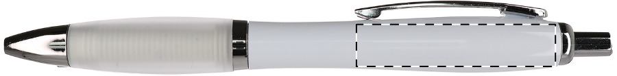 Weißer Kunststoff-Kugelschreiber mit farbigem Clip, blauschreibend.Maße: ø10×138 mmSchreibgerät-Typ: KugelschreiberSchreibgerät-Mechanik: DruckmechanikSchreibfarbe: BlauMinentyp: Normale MineLinienstärke: 1 mmMaterial: Kunststoff (ABS)Veredelungsposition 1: Korpus - rechts vom ClipTechnologie: UV-LED-Druck - EinzelnamenDurchmesser: 0Druckcode: NUVATechnologie: TampondruckMaximale Farben: 4Durchmesser: 0Druckcode: P0Technologie: TampondruckMaximale Farben: 1Durchmesser: 0Druckcode: P1Technologie: UV LED DruckDurchmesser: 0Druckcode: UVAVeredelungsposition 2: Korpus - links vom ClipTechnologie: UV-LED-Druck - EinzelnamenDurchmesser: 0Druckcode: NUVATechnologie: TampondruckMaximale Farben: 4Durchmesser: 0Druckcode: P0Technologie: TampondruckMaximale Farben: 1Durchmesser: 0Druckcode: P1Technologie: UV LED DruckDurchmesser: 0Druckcode: UVAVeredelungsposition 3: KlipTechnologie: TampondruckMaximale Farben: 4Durchmesser: 0Druckcode: P0Veredelungsposition 4: Korpus - in Verlängerung vom ClipTechnologie: TampondruckMaximale Farben: 4Durchmesser: 0Druckcode: P0