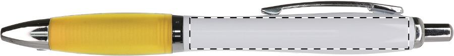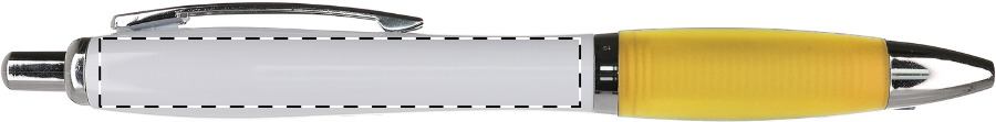 Kunststoff-Kugelschreiber mit weißem Schaft, farbiger Griffzone und verchromten Elementen, blauschreibend.Maße: ø13×140 mmSchreibgerät-Typ: KugelschreiberSchreibgerät-Mechanik: DruckmechanikSchreibfarbe: BlauMinentyp: Normale MineLinienstärke: 1 mmMaterial: Kunststoff (ABS), GummiVeredelungsposition 1: Rechts vom ClipTechnologie: TampondruckMaximale Farben: 4Durchmesser: 0Druckcode: P0Technologie: UV LED DruckDurchmesser: 0Druckcode: UVAVeredelungsposition 2: Links vom ClipTechnologie: TampondruckMaximale Farben: 4Durchmesser: 0Druckcode: P0Technologie: UV LED DruckDurchmesser: 0Druckcode: UVAVeredelungsposition 3: Korpus - rechts vom ClipTechnologie: TampondruckMaximale Farben: 4Durchmesser: 0Druckcode: P0Technologie: UV LED DruckDurchmesser: 0Druckcode: UVAVeredelungsposition 4: Korpus - links vom ClipTechnologie: TampondruckMaximale Farben: 4Durchmesser: 0Druckcode: P0Technologie: UV LED DruckDurchmesser: 0Druckcode: UVAVeredelungsposition 5: Korpus - gegenüber vom ClipTechnologie: TampondruckMaximale Farben: 2Durchmesser: 0Druckcode: P0