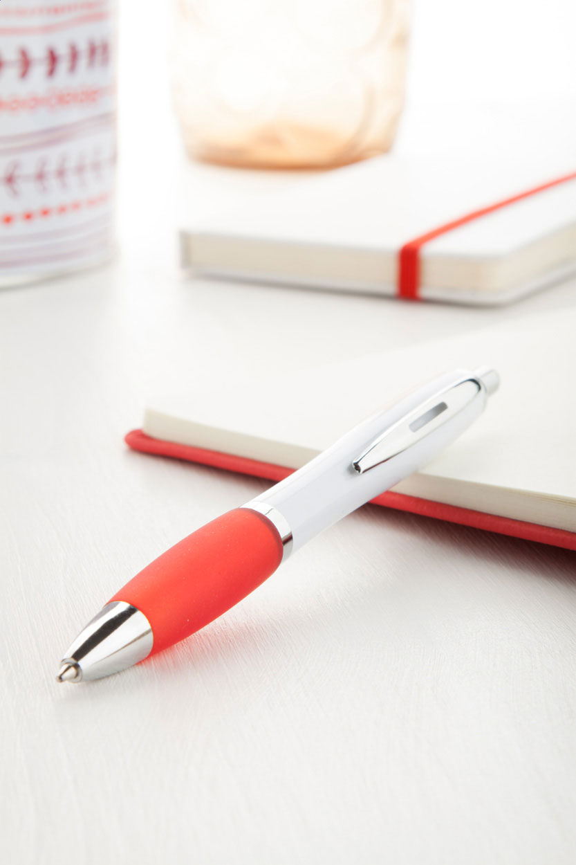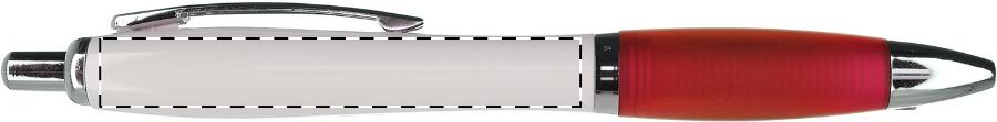 Kunststoff-Kugelschreiber mit weißem Schaft, farbiger Griffzone und verchromten Elementen, blauschreibend.Maße: ø13×140 mmSchreibgerät-Typ: KugelschreiberSchreibgerät-Mechanik: DruckmechanikSchreibfarbe: BlauMinentyp: Normale MineLinienstärke: 1 mmMaterial: Kunststoff (ABS), GummiVeredelungsposition 1: Rechts vom ClipTechnologie: UV-LED-Druck - EinzelnamenDurchmesser: 0Druckcode: NUVATechnologie: TampondruckMaximale Farben: 4Durchmesser: 0Druckcode: P0Technologie: UV LED DruckDurchmesser: 0Druckcode: UVAVeredelungsposition 2: Links vom ClipTechnologie: UV-LED-Druck - EinzelnamenDurchmesser: 0Druckcode: NUVATechnologie: TampondruckMaximale Farben: 4Durchmesser: 0Druckcode: P0Technologie: UV LED DruckDurchmesser: 0Druckcode: UVAVeredelungsposition 3: Korpus - rechts vom ClipTechnologie: UV-LED-Druck - EinzelnamenDurchmesser: 0Druckcode: NUVATechnologie: TampondruckMaximale Farben: 4Durchmesser: 0Druckcode: P0Technologie: UV LED DruckDurchmesser: 0Druckcode: UVAVeredelungsposition 4: Korpus - links vom ClipTechnologie: UV-LED-Druck - EinzelnamenDurchmesser: 0Druckcode: NUVATechnologie: TampondruckMaximale Farben: 4Durchmesser: 0Druckcode: P0Technologie: UV LED DruckDurchmesser: 0Druckcode: UVAVeredelungsposition 5: Korpus - gegenüber vom ClipTechnologie: TampondruckMaximale Farben: 2Durchmesser: 0Druckcode: P0
