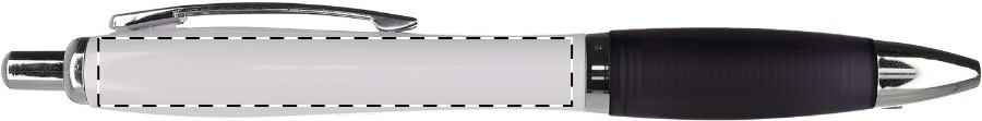 Weißer Kunststoff-Kugelschreiber mit farbigem Clip, blauschreibend.Maße: ø10×138 mmSchreibgerät-Typ: KugelschreiberSchreibgerät-Mechanik: DruckmechanikSchreibfarbe: BlauMinentyp: Normale MineLinienstärke: 1 mmMaterial: Kunststoff (ABS)Veredelungsposition 1: Korpus - rechts vom ClipTechnologie: UV-LED-Druck - EinzelnamenDurchmesser: 0Druckcode: NUVATechnologie: TampondruckMaximale Farben: 4Durchmesser: 0Druckcode: P0Technologie: TampondruckMaximale Farben: 1Durchmesser: 0Druckcode: P1Technologie: UV LED DruckDurchmesser: 0Druckcode: UVAVeredelungsposition 2: Korpus - links vom ClipTechnologie: UV-LED-Druck - EinzelnamenDurchmesser: 0Druckcode: NUVATechnologie: TampondruckMaximale Farben: 4Durchmesser: 0Druckcode: P0Technologie: TampondruckMaximale Farben: 1Durchmesser: 0Druckcode: P1Technologie: UV LED DruckDurchmesser: 0Druckcode: UVAVeredelungsposition 3: KlipTechnologie: TampondruckMaximale Farben: 4Durchmesser: 0Druckcode: P0Veredelungsposition 4: Korpus - in Verlängerung vom ClipTechnologie: TampondruckMaximale Farben: 4Durchmesser: 0Druckcode: P0