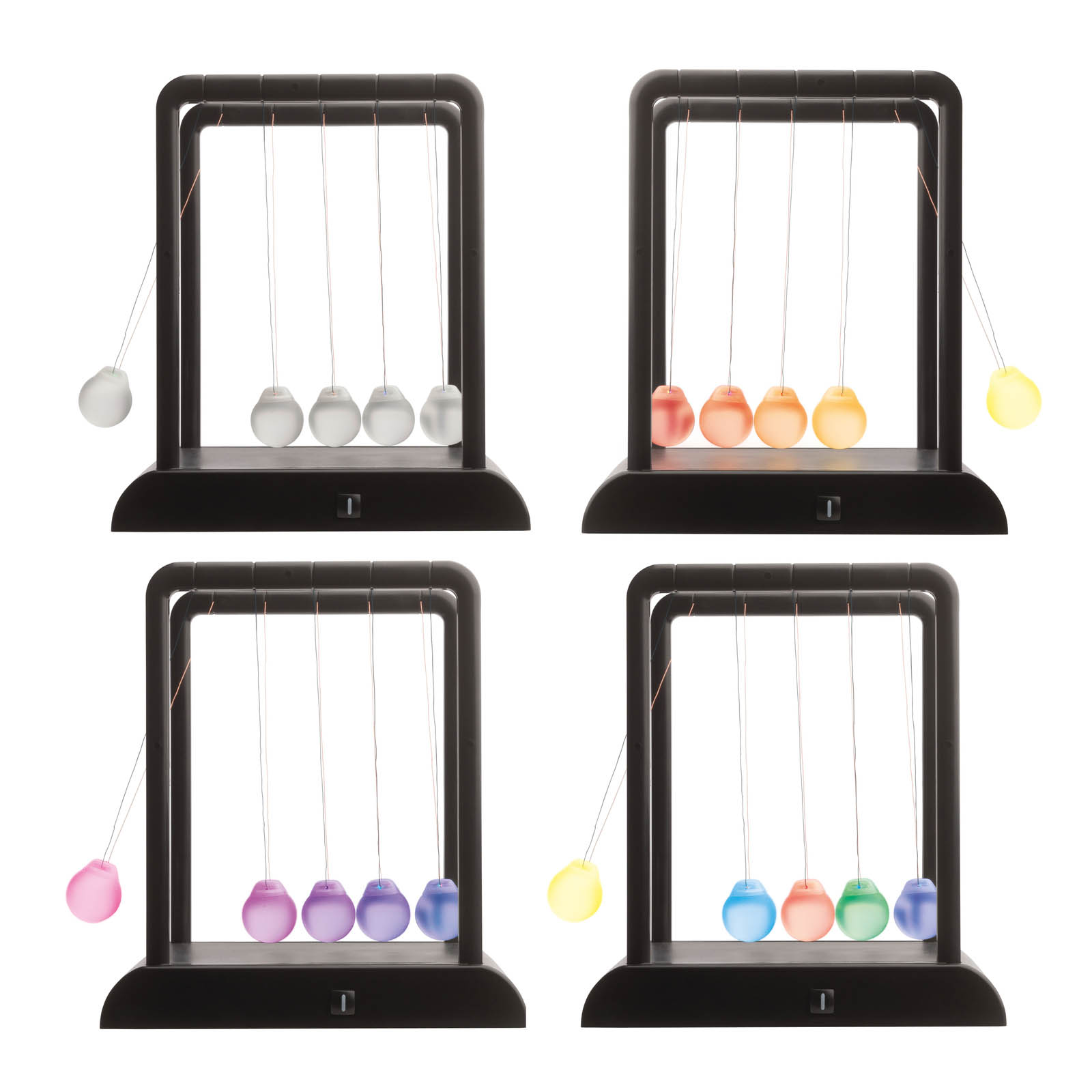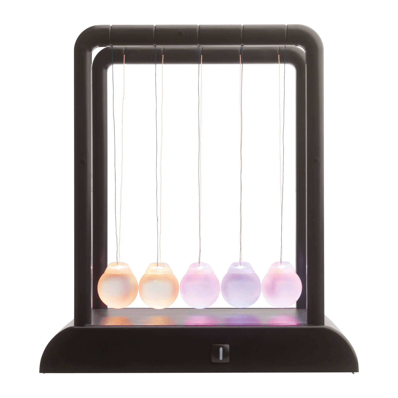 Das Kugelstoßpendel für den Schreibtisch schafft eine ganz besondere Atmosphäre durch wechselnde Lichteffekte.