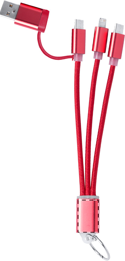 Ladekabel aus Aluminium mit Eingang: 2-in-1 Typ-C & Typ-A und Micro-B (2 in 1 Pin), Typ-C und Micro-B Ausgang. Kabellänge: 120cm.Material: AluminiumMaße: 120x1,7x0,8 cmGewicht: 0.036 kgFarbe: SilberVeredelung: Bestickung, Bedruckung, BeflockungHandling/Farbcodes: Z/14Druckposition: CASE SIDE 1Druckmaße: 8 x 25 mmDrucktechniken: DL, DO1, L2, P4Druckposition: CASE SIDE 2Druckmaße: 8 x 25 mmDrucktechniken: DL, DO1, L2, P4