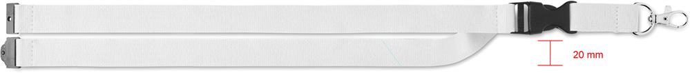Lanyard aus Baumwolle mit Metallkarabiner, abnehmbarem Steckverschluss und Panikverschluss. 20 mm Breite.