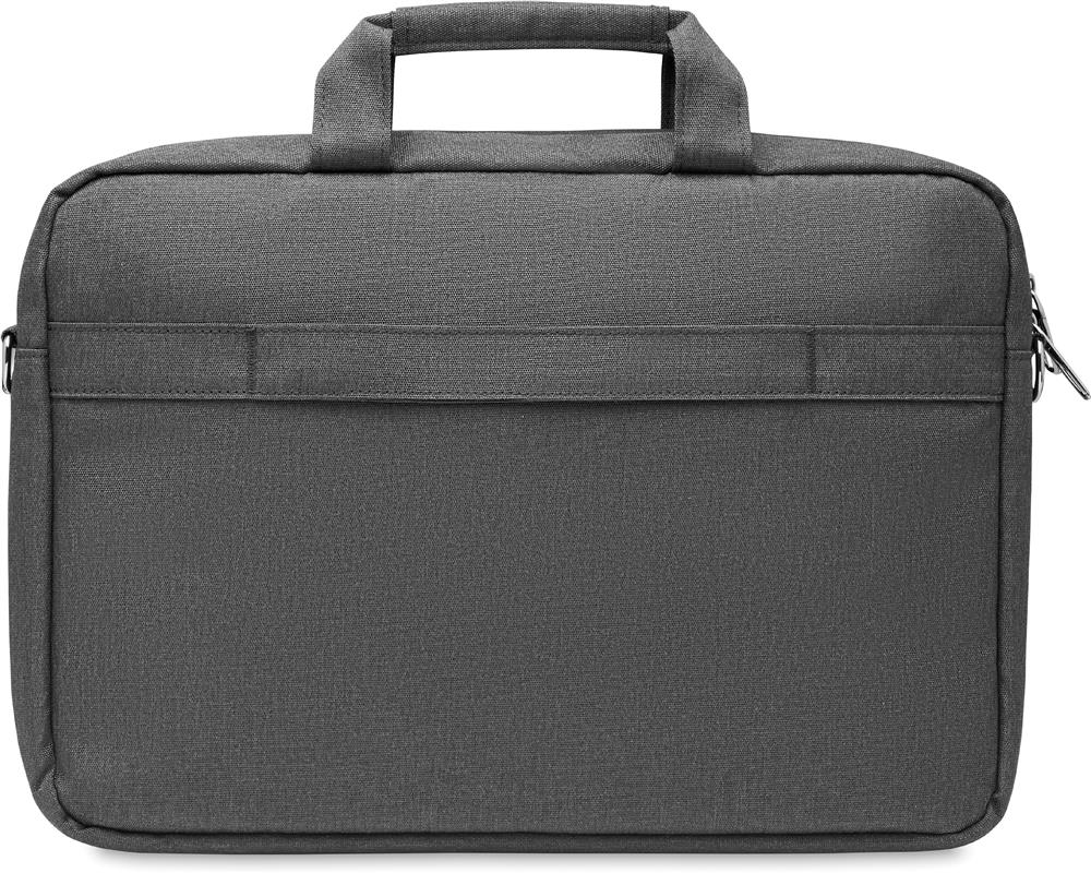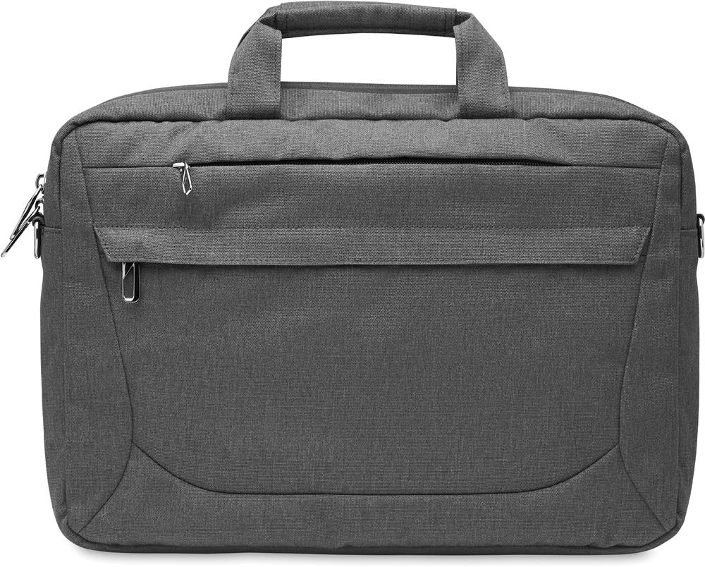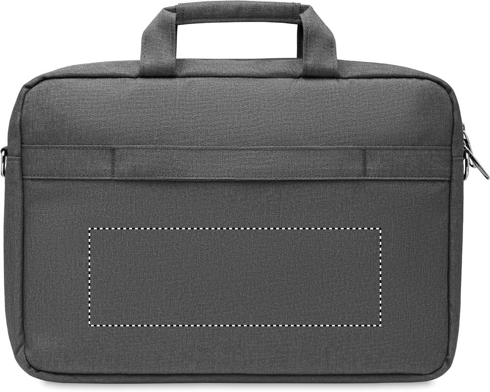 15'' Laptop-Tasche aus 600D RPET Polyester. 2 Hauptfächer für Laptop und Tablet sowie große Frontreißverschlusstasche. Kleine Tasche mit Reißverschluss. Abnehmbare und verstellbare Schultergurte. Trolley- Halterung.