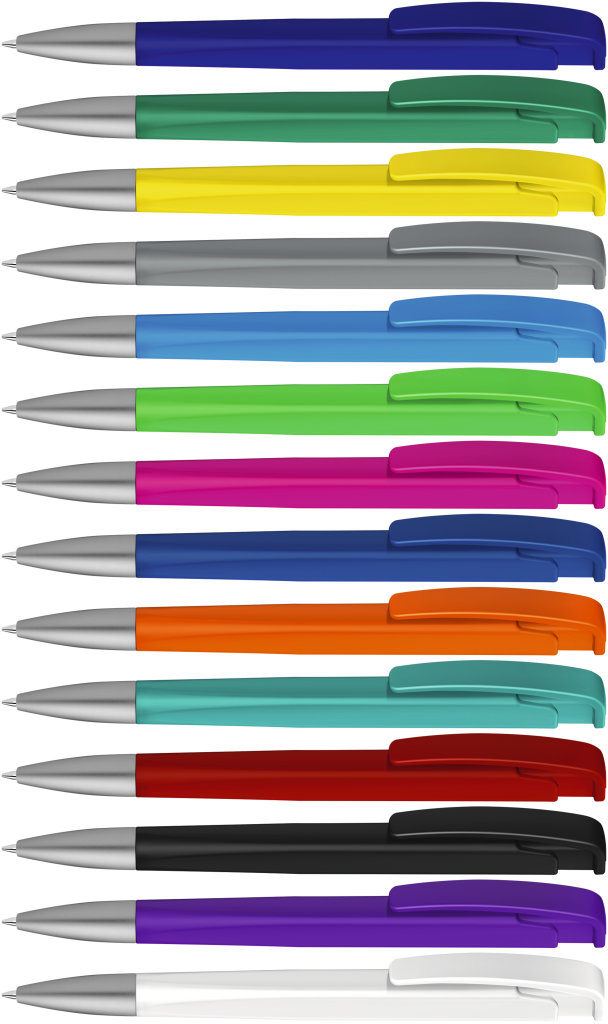 Farbiger Kugelschreiber aus Kunststoff, schwarzschreibend.Maße: ø10×138 mmSchreibgerät-Typ: KugelschreiberSchreibgerät-Mechanik: DruckmechanikSchreibfarbe: SchwarzMinentyp: Normale MineLinienstärke: 1 mmMaterial: KunststoffVeredelungsposition 1: Korpus - rechts vom ClipTechnologie: TampondruckMaximale Farben: 4Durchmesser: 0Druckcode: P0Technologie: TampondruckMaximale Farben: 1Durchmesser: 0Druckcode: P1Technologie: UV LED DruckDurchmesser: 0Druckcode: UVAVeredelungsposition 2: Korpus - links vom ClipTechnologie: TampondruckMaximale Farben: 4Durchmesser: 0Druckcode: P0Technologie: TampondruckMaximale Farben: 1Durchmesser: 0Druckcode: P1Technologie: UV LED DruckDurchmesser: 0Druckcode: UVAVeredelungsposition 3: KlipTechnologie: TampondruckMaximale Farben: 4Durchmesser: 0Druckcode: P0Veredelungsposition 4: Korpus - in Verlängerung vom ClipTechnologie: TampondruckMaximale Farben: 4Durchmesser: 0Druckcode: P0