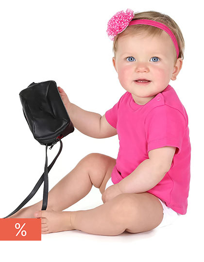 Kurzärmeliges Baby-T-ShirtBio-Baumwolle und soziale StandardsDruckknopfverschluss an der Schulter für zusätzlichen KomfortWeiche und elastische Interlock-Verarbeitung60 °C waschbarReaktiv gefärbtMaterial: 100% BaumwolleGrammatur: 220 g/m²Gewicht: 0.053Hergestellt nach: Bio-BaumwolleVeredelung: Bestickung, Bedruckung, Beflockung