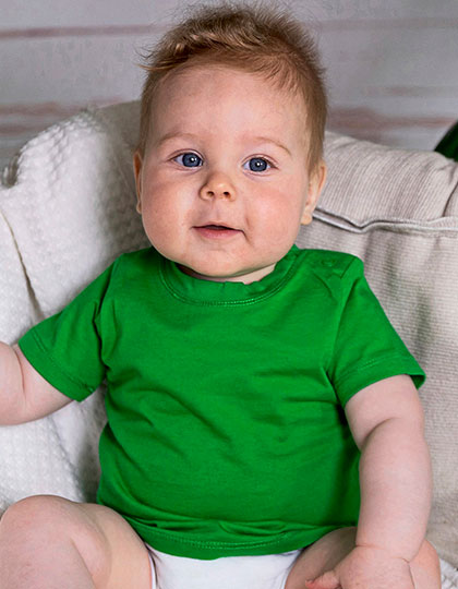 Kurzärmeliges Baby-T-ShirtBio-Baumwolle und soziale StandardsDruckknopfverschluss an der Schulter für zusätzlichen KomfortWeiche und elastische Interlock-Verarbeitung60 °C waschbarReaktiv gefärbtMaterial: 100% BaumwolleGrammatur: 220 g/m²Gewicht: 0.053Hergestellt nach: Bio-BaumwolleVeredelung: Bestickung, Bedruckung, Beflockung