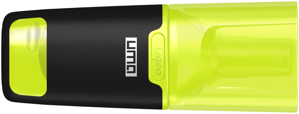 Flüssig-Textmarker MINI mit schwarzem Schaft und transparenter Kappe in Schreibfarbe. Ohne Pumpen oder Anstechen sofort einsatzfähig, umweltfreundlicher, längere Schreibdauer und höhere Leuchtkraft als herkömmliche Textmarker. Produziert nach EN-71, ASTM D-4236. Hier geht´s zum Video: [[https://uma-pen.com/liqeoserie|Video]].