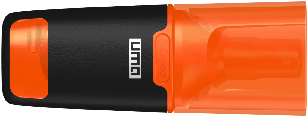 Flüssig-Textmarker MINI mit schwarzem Schaft und transparenter Kappe in Schreibfarbe. Ohne Pumpen oder Anstechen sofort einsatzfähig, umweltfreundlicher, längere Schreibdauer und höhere Leuchtkraft als herkömmliche Textmarker. Produziert nach EN-71, ASTM D-4236. Hier geht´s zum Video: [[https://uma-pen.com/liqeoserie|Video]].