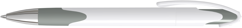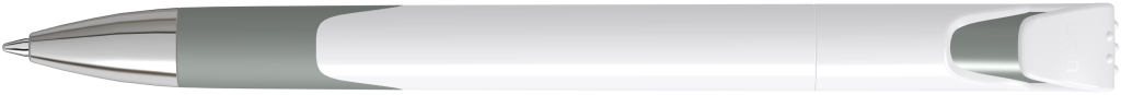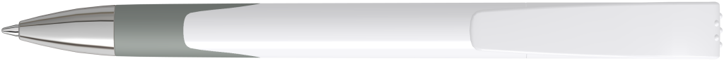 Druckkugelschreiber mit gedeckt glänzendem Gehäuse, Gummigriffzone und schwerer Metallspitze glanzverchromt.Druckbereich: Auf dem Clip 35mm x 6mm Tampondruck (T), in Clipverlängerung 25mm x 20mm Siebdruck (S), gegenüber vom Clip 40mm x 13mm Siebdruck (S), seitlich vom Clip 40mm x 13mm Siebdruck (S)
