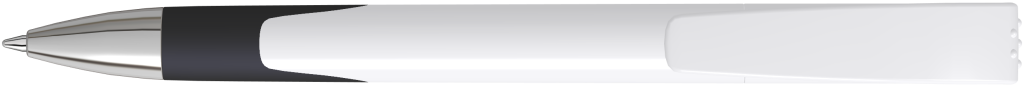 Druckkugelschreiber mit gedeckt glänzendem Gehäuse, Gummigriffzone und schwerer Metallspitze glanzverchromt.Druckbereich: Auf dem Clip 35mm x 6mm Tampondruck (T), in Clipverlängerung 25mm x 20mm Siebdruck (S), gegenüber vom Clip 40mm x 13mm Siebdruck (S), seitlich vom Clip 40mm x 13mm Siebdruck (S)
