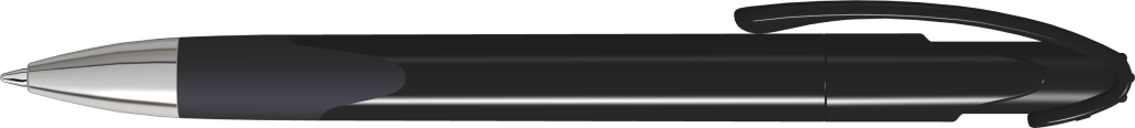 Druckkugelschreiber mit gedeckt glänzendem Gehäuse, Gummigriffzone und schwerer Metallspitze glanzverchromt.Druckbereich: Auf dem Clip 35mm x 6mm Tampondruck (T), in Clipverlängerung 25mm x 20mm Siebdruck (S), gegenüber vom Clip 40mm x 13mm Siebdruck (S), seitlich vom Clip 40mm x 13mm Siebdruck (S)