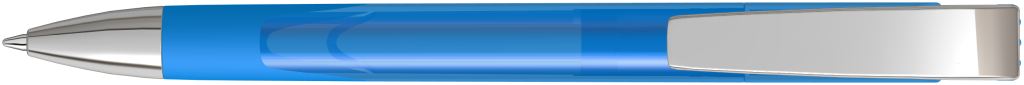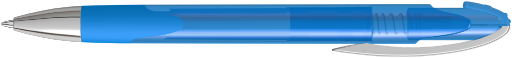 Druckkugelschreiber mit transparent glänzendem Gehäuse, Gummigriffzone, schwerer Metallspitze und Metallclip glanzverchromt.