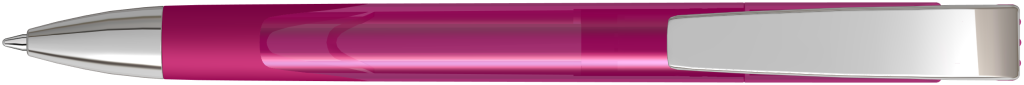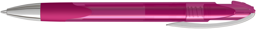 Druckkugelschreiber mit transparent glänzendem Gehäuse, Gummigriffzone und schwerer Metallspitze glanzverchromt.Druckbereich: In Clipverlängerung 25mm x 20mm Siebdruck (S), gegenüber vom Clip 40mm x 13mm Siebdruck (S), seitlich vom Clip 40mm x 13mm Siebdruck (S), auf dem Clip 35mm x 6mm Tampondruck (T)