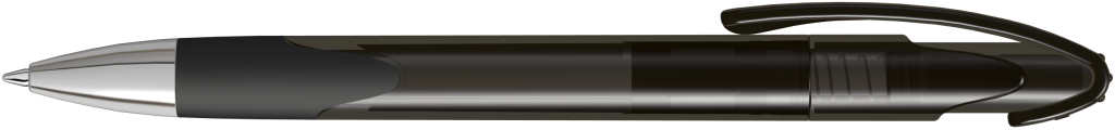 Druckkugelschreiber mit transparent glänzendem Gehäuse, Gummigriffzone, schwerer Metallspitze und Metallclip glanzverchromt.Druckbereich: Auf dem Clip 35mm x 6mm Lasergravur (L), in Clipverlängerung 25mm x 20mm Siebdruck (S), gegenüber vom Clip 40mm x 13mm Siebdruck (S), seitlich vom Clip 40mm x 13mm Siebdruck (S), auf dem Clip 35mm x 6mm Tampondruck (MT), auf dem Clip 35mm x 6mm Einzelnamensgravur (EL)